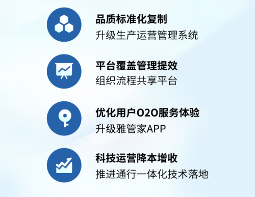 未來,雅生活集團將著力打造五大核心競爭力,分別為服務產品力、市場拓展力、科技運營力、整合組局力以及高效組織力。集團將始終堅持品質核心,持續(xù)提升服務標準化,不斷創(chuàng)新、迭代服務產品,打磨服務產品及口碑,梳理不同業(yè)態(tài)服務產品標桿。